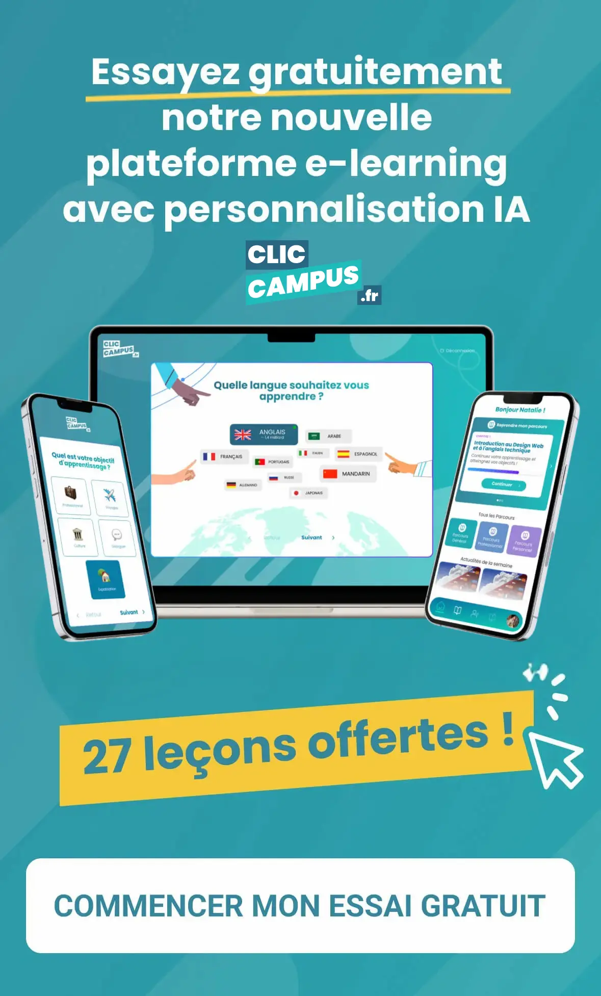 • Couplés à une plateforme d’apprentissage (elearning) moderne, personnalisée selon votre niveau, métier et centres d’intérêts.