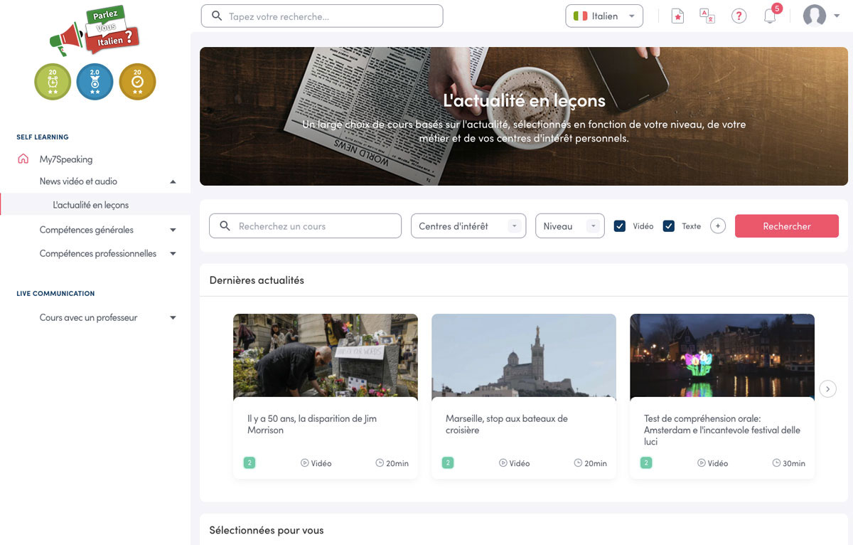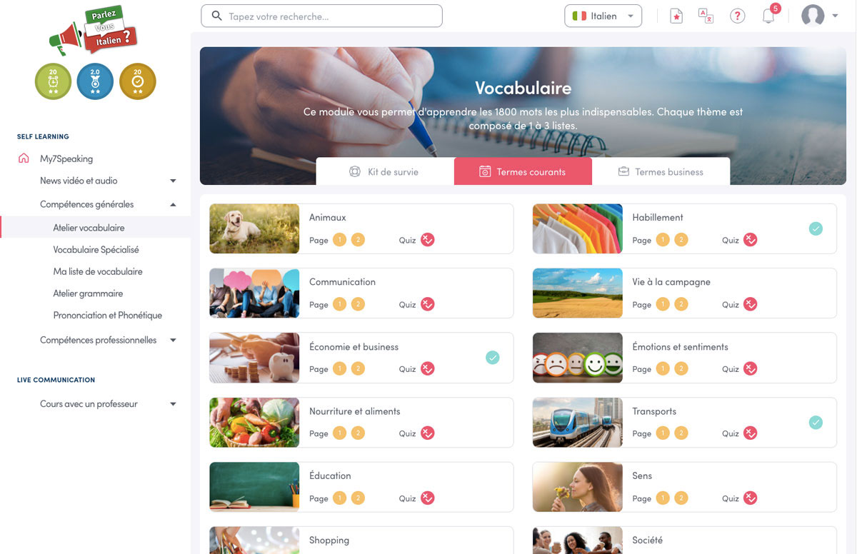 Néanmoins, apprendre l’italien demande une pratique importante. Nos cours pourront vous aider à consolider votre niveau, revoir des notions ou vérifier un mot de vocabulaire.
